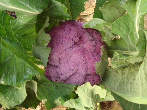 紫菜花是十字花科芸薹属植物,是结球甘蓝的一个变种,果形与普通菜花一样,只是颜色不同。紫菜花花球紫红艳丽,性味甘平、补肾健脑,具有很好的防癌作用。