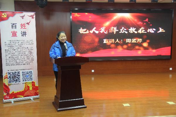 在宣讲报告会上,5位宣讲员分别讲述在各自岗位上,不忘初心、坚守信念、兢兢业业、追求卓越、亲历、亲闻、亲为的感人故事。拆迁整治中的带头人刘力佳、把阳光永远留在心里的陈昔云、把人民群众放在心上的周孟琴、为了京西古镇的驼铃声王芮以及军体人永远跟党走的段晋辉,他们以自己的真情实感和生动故事,讲述对十九大精神的切身感受和体会。